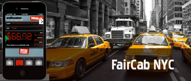 Fair Cab NYC is the first smartphone app to allow New Yorkers to estimate the cost of a cab trip before they have ever hailed a cab. Fair Cab functions as a hand-held meter using GPS and local taxi rates to make traveling through the Big Apple a piece of cake.