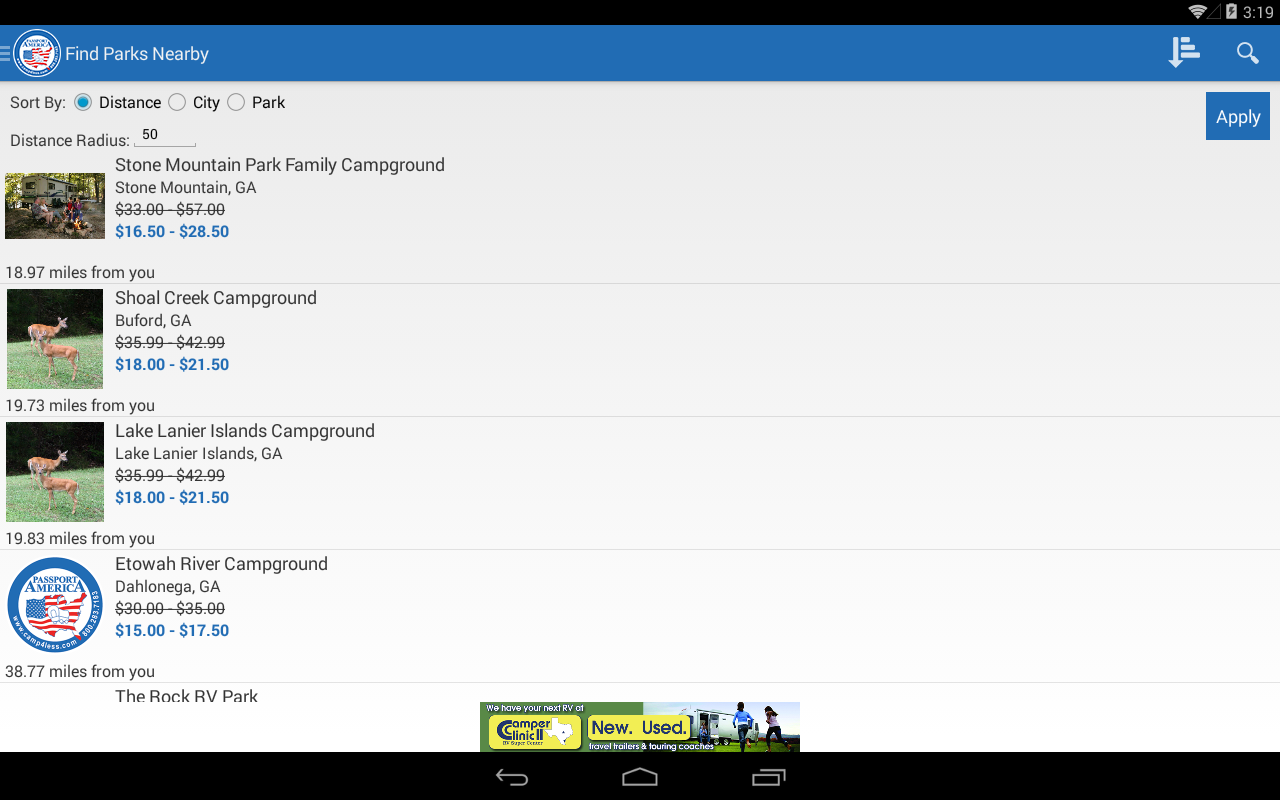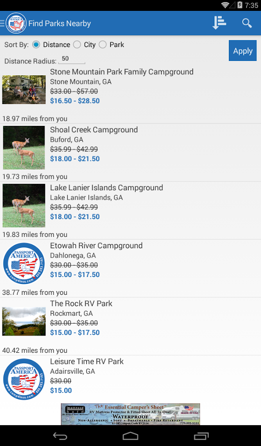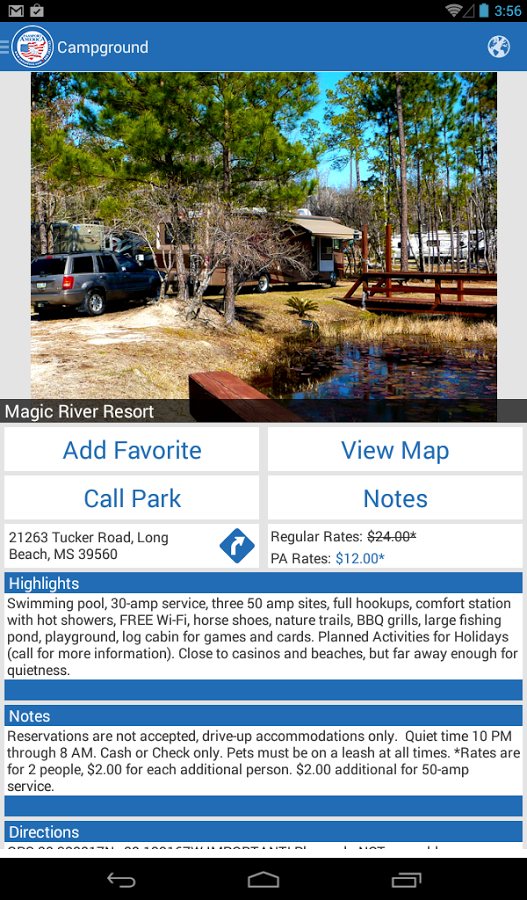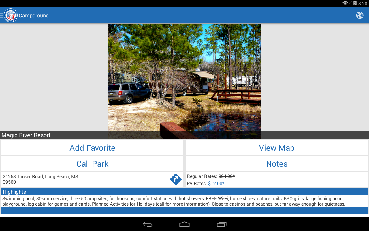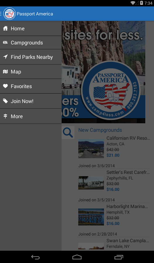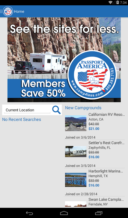 Since 1992, Passport America is the Original 50% Discount Camping Club. Presently offering over 1,800 locations for Members to save while camping in the US, Canada, and Mexico. We consider our application to best interactive camping directory of its kind. It is a free download for anyone (Members of Passport America and non-members) who would like to browse our directory of Participating Campgrounds, RV Parks, Resorts, etc. Compared to our website and printed camping guide, only our application provides the ability to locate parks based on your current location, and handset users have the convenience of quickly calling participating park of interest directly from the park’s Passport America listing. Plus, handset users have the ultimate convenience of calling a Passport America Customer Support Representative by just the touch of a button. Additional features of the application include mapping and saving favorite camping locations for future use.
